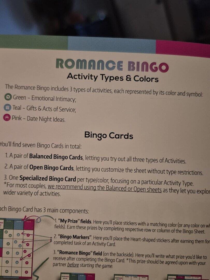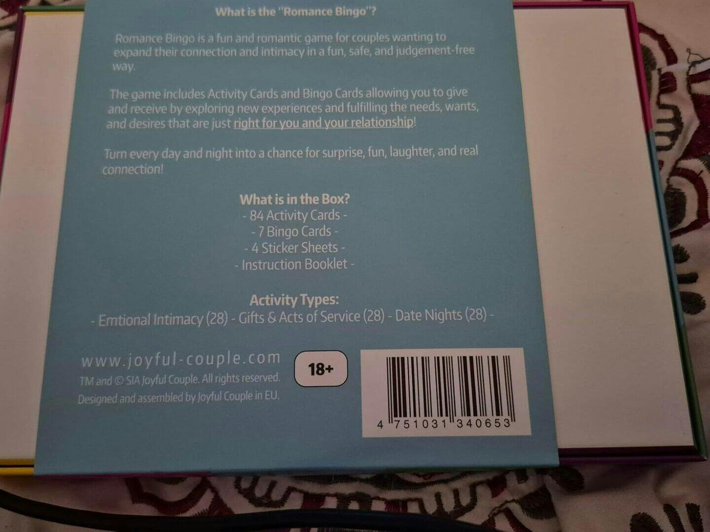 I got the Romance Bingo as a fun way to add excitement and deeper connection to my relationship, and it did not disappoint! The game is well-designed with a variety of meaningful challenges that help strengthen emotional intimacy, acts of service, and date nights in a lighthearted way.